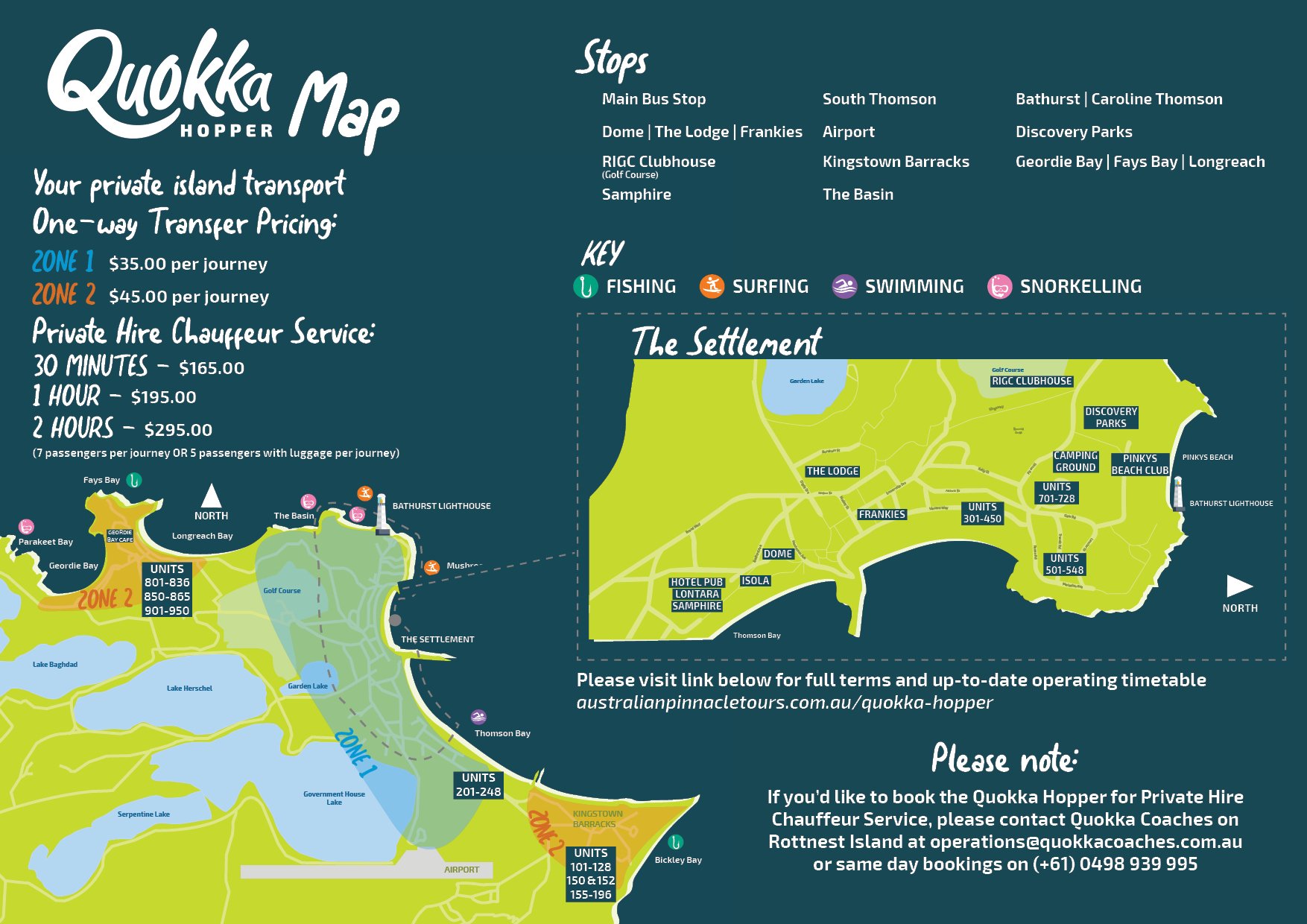 To book, please contact Quokka Coaches on Rottnest Island at [email protected] or same day bookings on (+61) 0498 939 995.